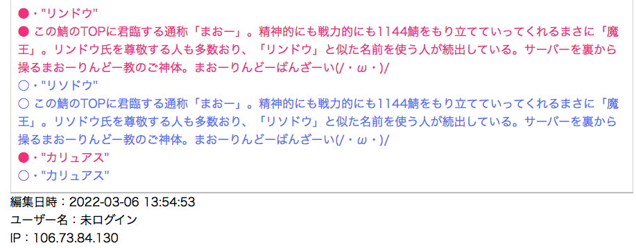 リンドウをリソドウなどに変更するわかりにくい嫌がらせも同じ方が行っていたため